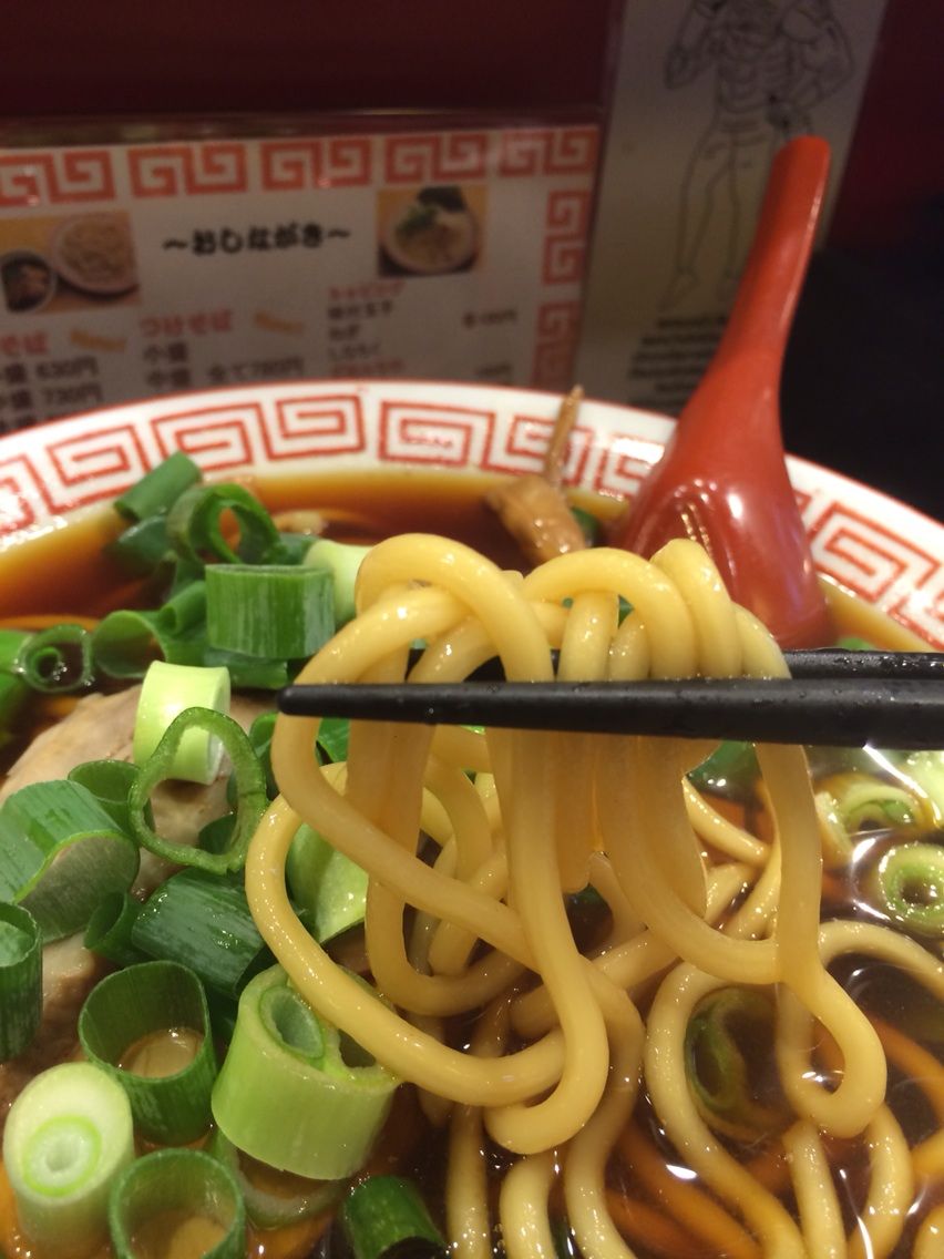 シンプルな、いわゆる中華そばですね。粗めのネギが特徴的です。色味がそれぞれハッキリしてるので、綺麗です。で、なんとなく強めです。