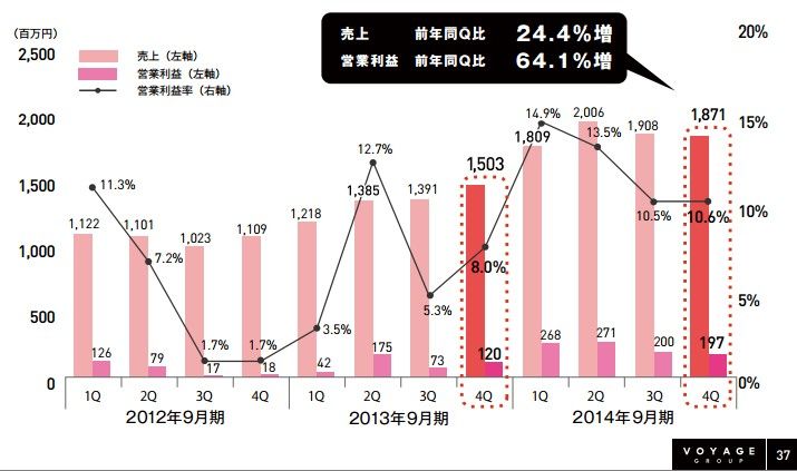 そんなVOYAGE GROUPの2014年9月期の決算が発表されました。好決算になった模様で、その中身を調べたいと思います。よろしくお願いいたします。