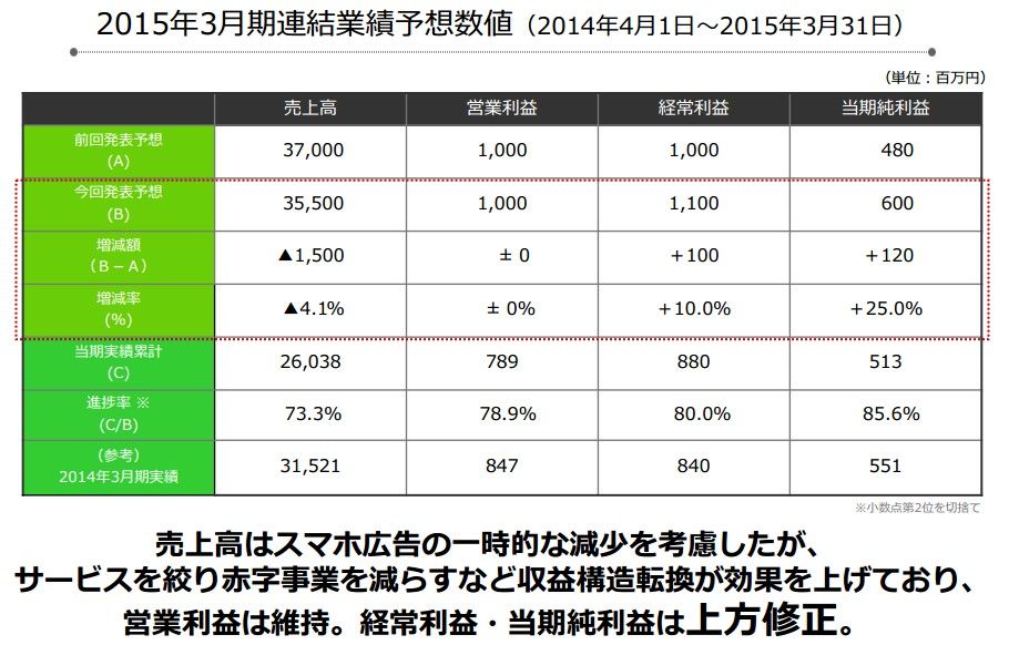 本日は、年明けに新スローガン「なにこれ すげー こんなのはじめて」が発表されたアドウェイズ。2015年3月期3Qの決算が発表されましたので、簡単に振り返ってみたいと思います。