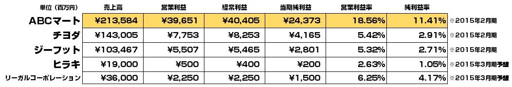 他の靴事業者との比較。一部業績予想も含む中「東京靴流通センター」のチヨダ、高級靴店のリーガルなど並べさせて頂きましたが、営業利益率で5~6%程度、純利益率で2~4%程度。それに対して、ABCマートは営業利益率で18.5%、純利益率で11.4%。今年も相変わらず突出しております。