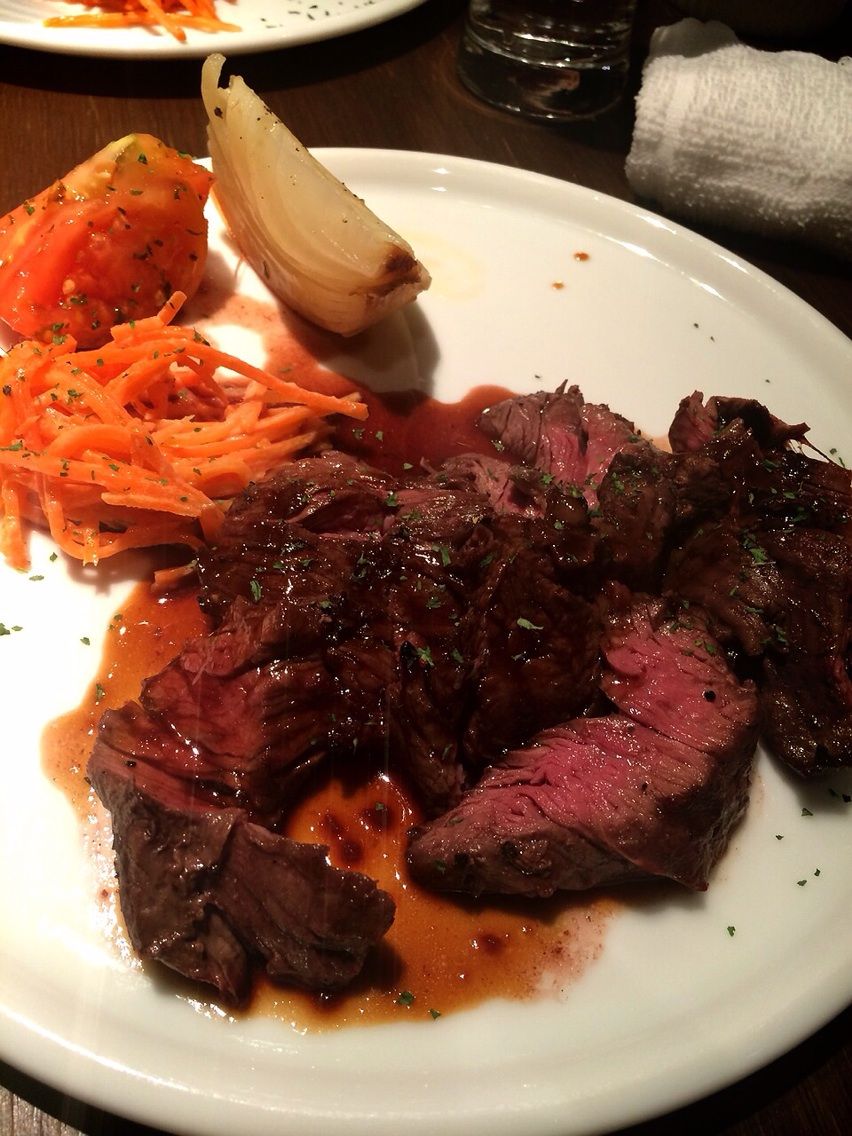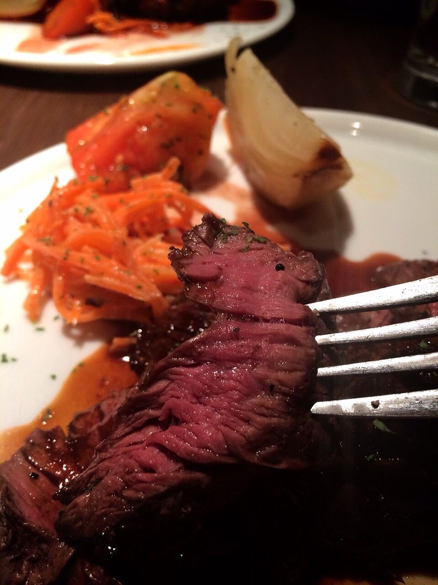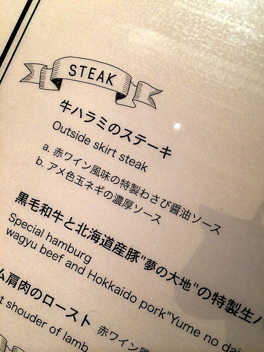 黒毛和牛のハンバーグや鶏や豚のグリル、ラム肉のロースト、牛すじカレーなど様々えすが、ココのオススメはなんといっても牛ハラミのステーキ。