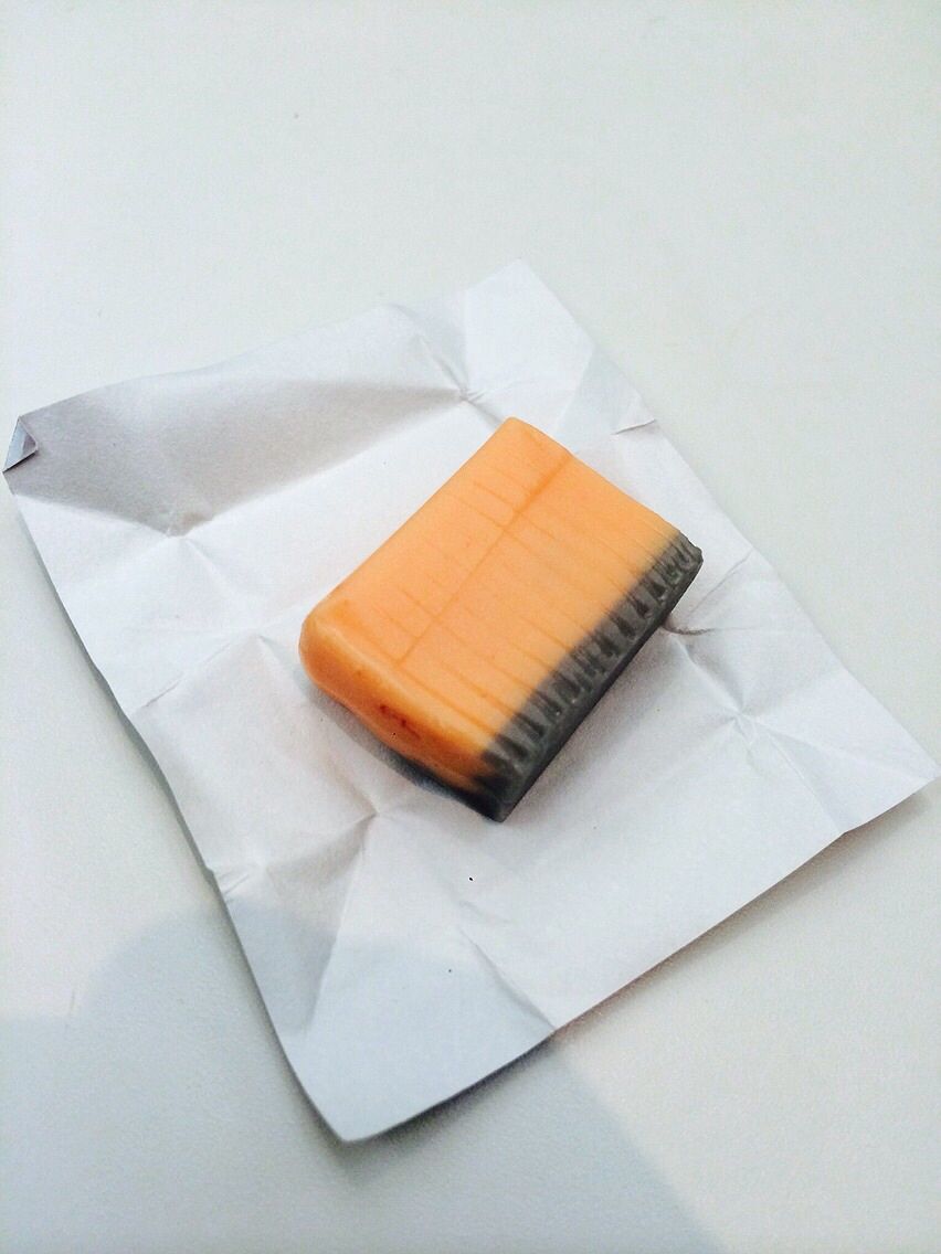 食べた感想としましては、見た目とは異なり”鮭感”は無かったです。普通に甘いキャンディです。ただ、微量に入っている鮭フレークが嫌という人は居ると思います。このフレークとのマッチングはそこまで好感はもてないかも。