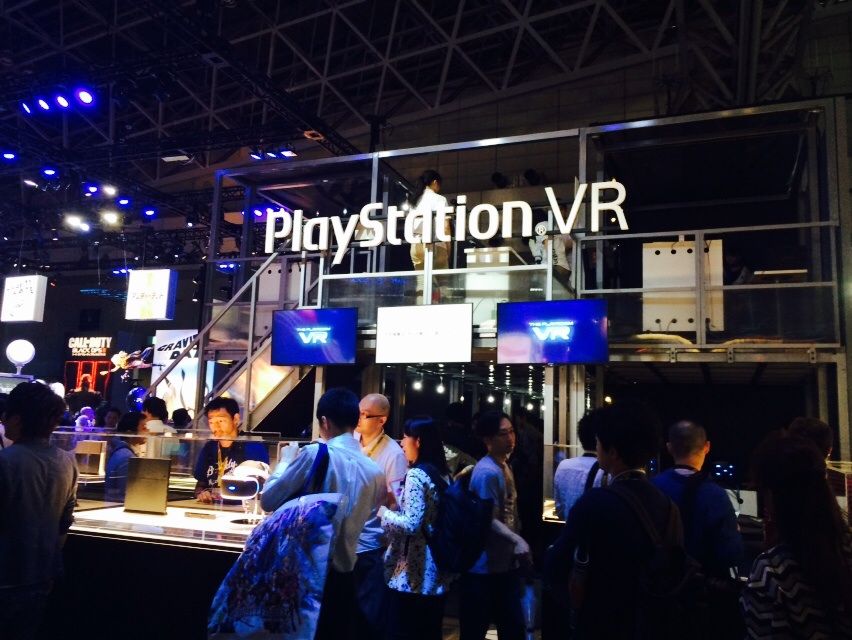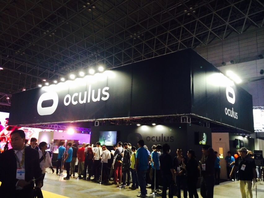 VRヘッドセット「オキュラスリフト」体験に列を成してたのは、オキュラスのブース。