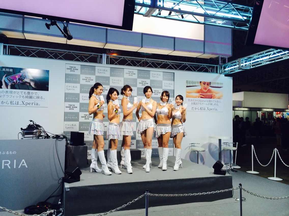 ある意味、一番の注目度だったのはXperiaブース。コンパニオンの方が透明のお風呂に入ったり、コンテンツが充実しておりました。