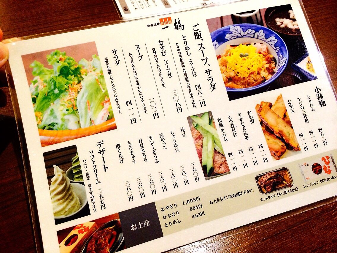要は、男女関わらず、がぶりつこうよって話です。オススメは、ひなどり、とりめし(スープ付き)。この2ついっておけば間違いないと思います。