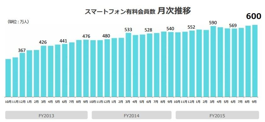 スマホ有料会員数も600万人(前期末比+60万人)を突破。