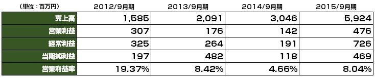 伸びてますねー。2015年9月期ガッツリ伸ばしてきております。