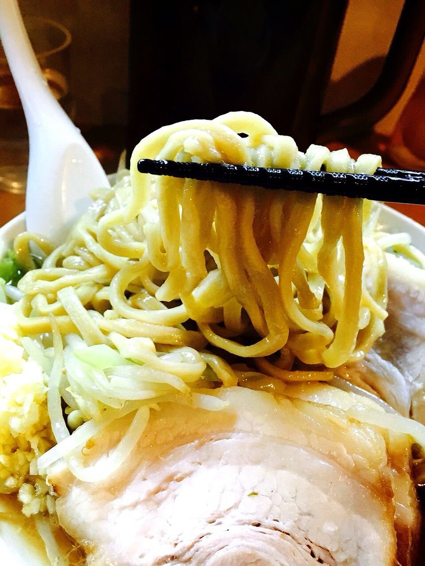 行列が店内にもビッシリです。今か今かとラーメンを待っている群衆の前で、黙々と食べる姿は何とも言えない空気感が張り詰めます。そこに、笑いや会話はありません。ただひたすら、麺と野菜、そして豚と格闘する音しか聞こえません。