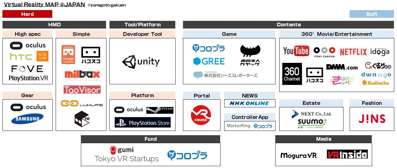 VR領域盛り上がってますね。ハードも普及し始める2016年は「VR元年」と言われておりますが、本当にそう思います。ハード/ソフト両面で、最近のVR周辺リリースの多さが物語ってると思います。ということで、日本国内のVR領域におけるカオスマップを簡単に作ってみました。