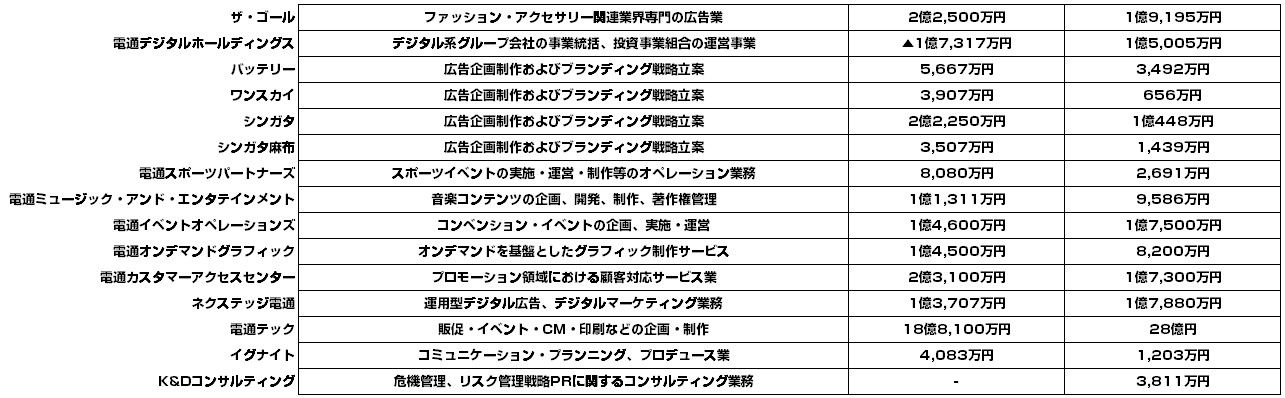 ここ数日、官報にて電通の子会社の決算が続々と出てきておりまして、簡単にまとめてみます。全36社です。
