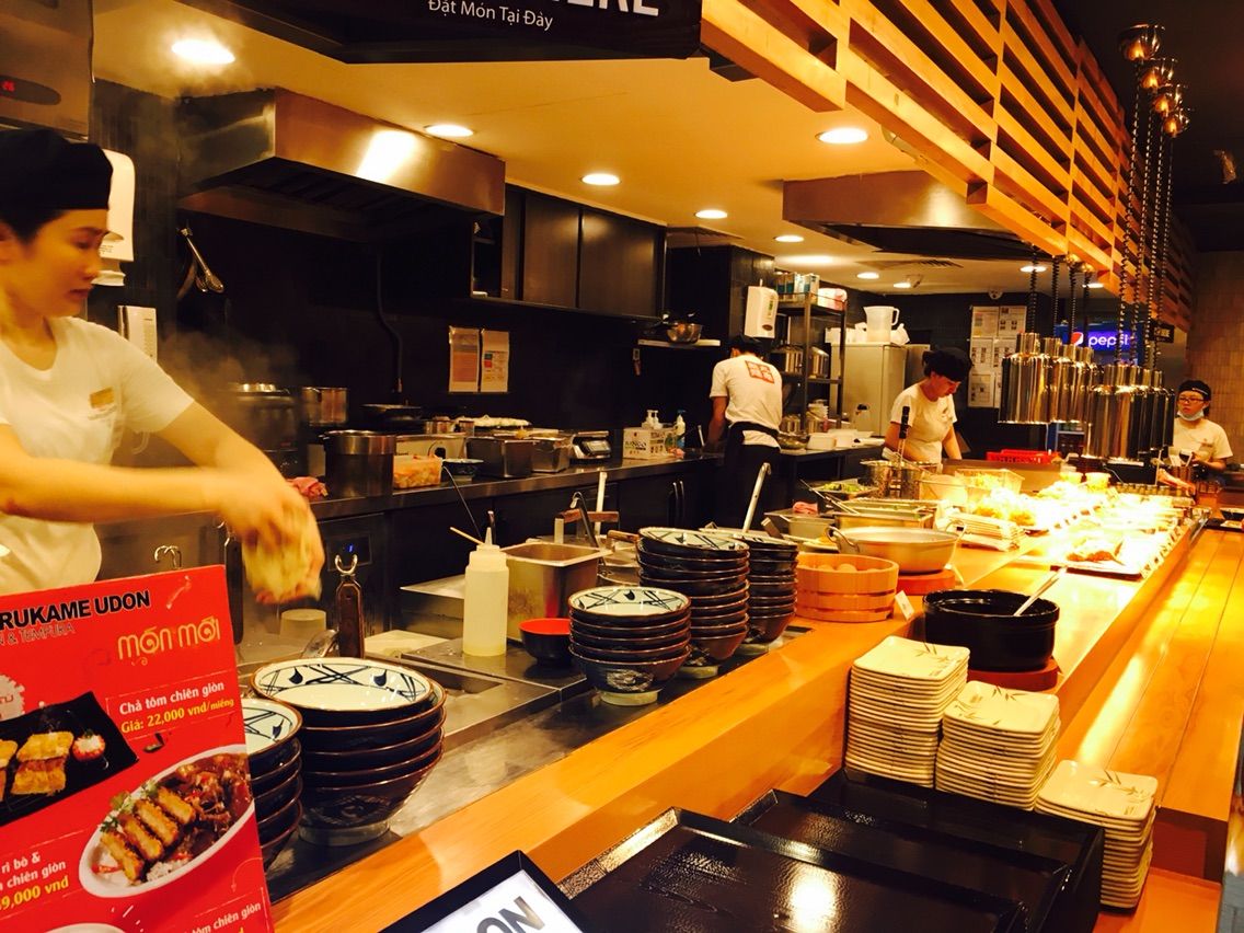 さて、注文です。一連の流れはなんら日本と変わりません。ベトナム人も一生懸命製麺したり麺茹でしたり天ぷら揚げたり。
