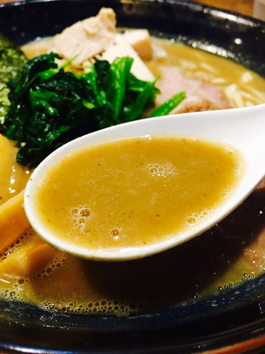 鳥取県産 大山鶏を使用したベースのスープに魚介を合わせたWスープが絶妙。多少トロミがあり濃厚。麺と絡みあうこと間違いなし。