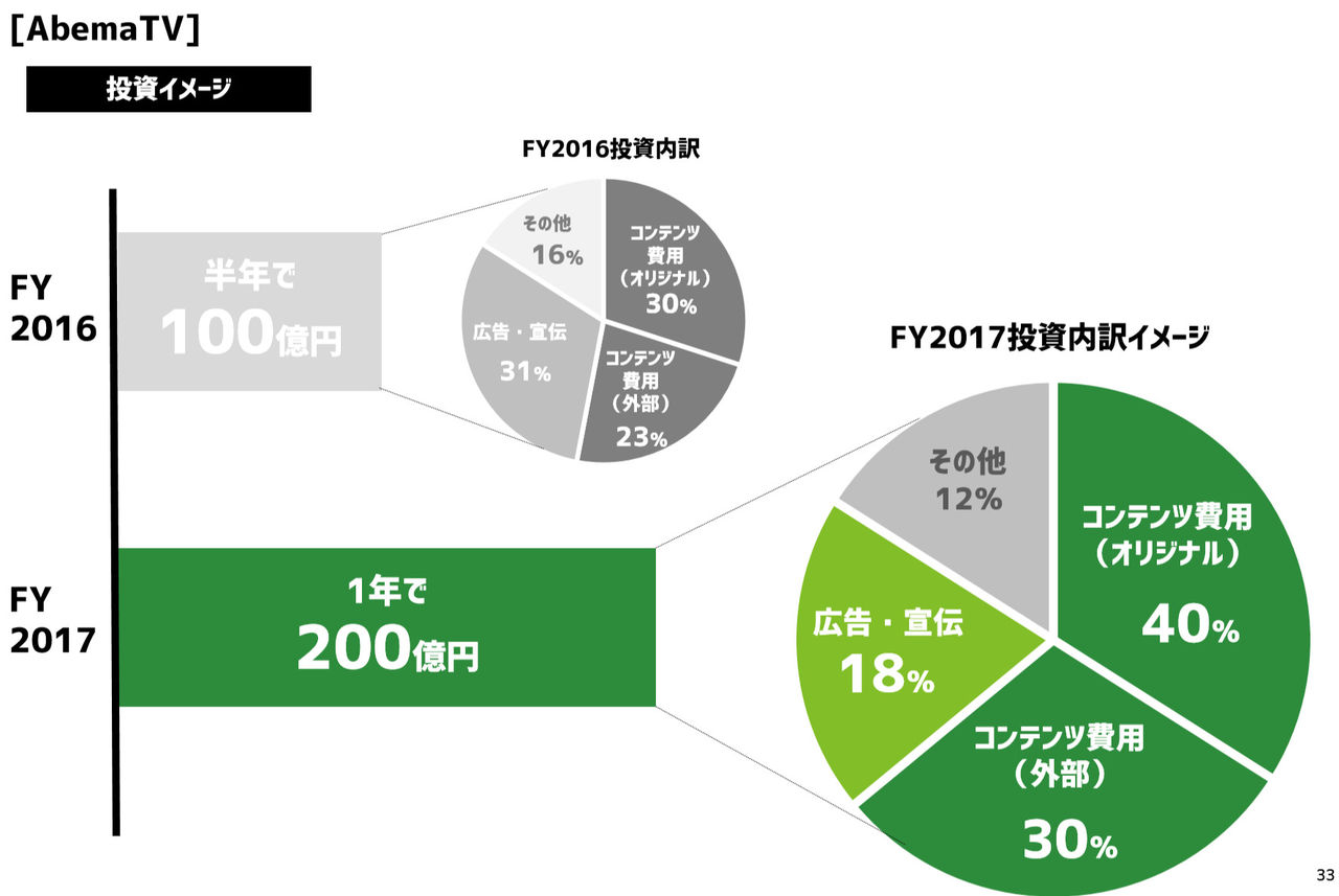 前期は半年で100億円を投じておりますが、今期は同様のペースで200億円を投じるようです。前期はリリースしたばかりだったこともあり、広告宣伝費の比率が高かったですが、今期はよりコンテンツ作りに投じるようです。