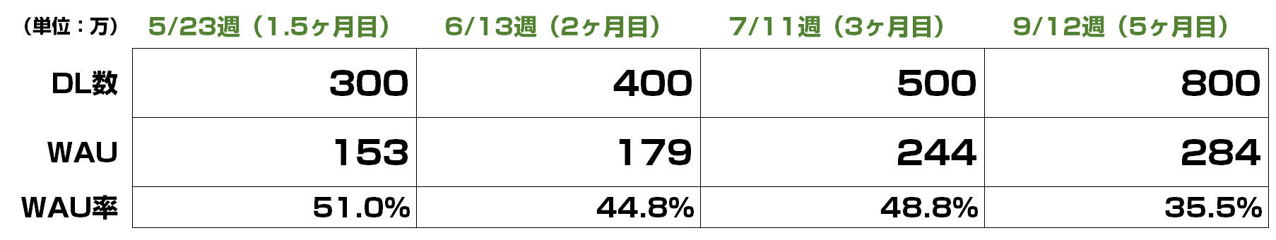 開始から半年が経過し、数字も色々と出てきたので、ザっと振り返ってみました。ザックリ現在の数字感で、DL数は約1000万DL/MAU約600万/WAU約300万。私も周りも多くのユーザーがいまして、結構皆さん使ってるなという印象ですが、開始半年の初動の数字としては非常に好調な推移といえそうです。