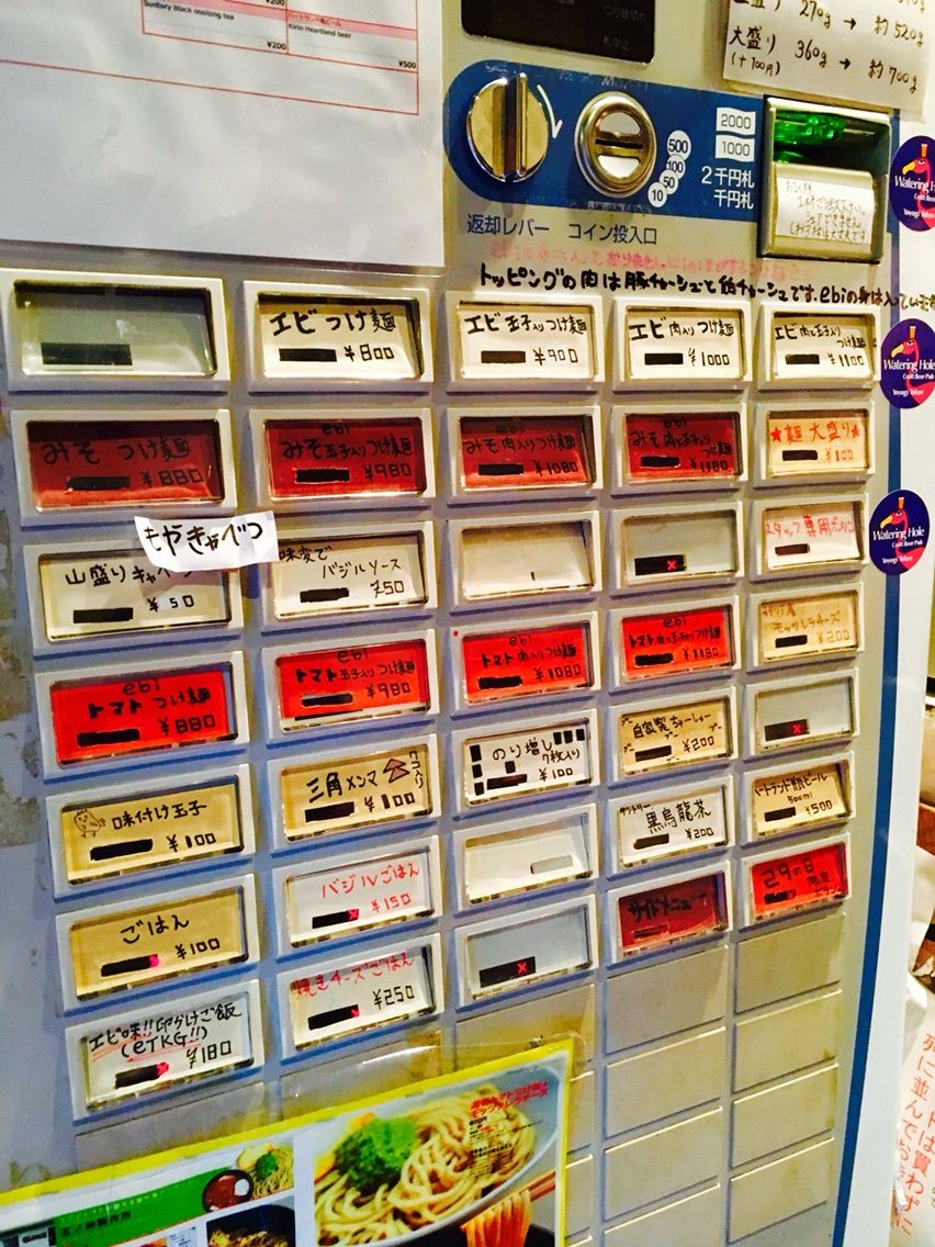さて入店。全て海老です。ノーマルつけ麺だけでなくトマトつけ麺なんてメニューもありまして、人気が高いです。バジルご飯とかモッツァレラチーズとかありますが、おそらく200%合うと思います。