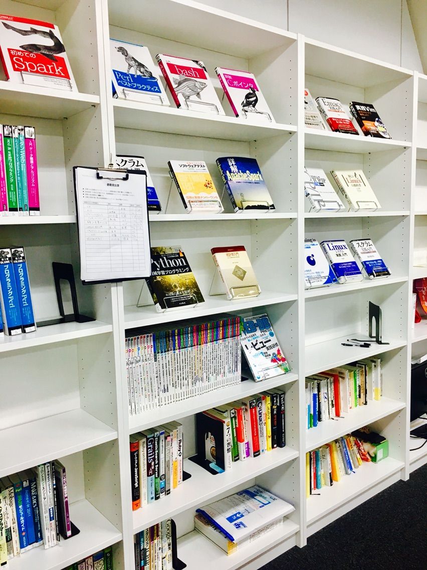 技術書専用の本棚とのことです。これらは全て貸出可能。さすがです。ユナイテッドは社内に多数のエンジニアを抱えており、自社サービスの開発・改良に努めているようです。