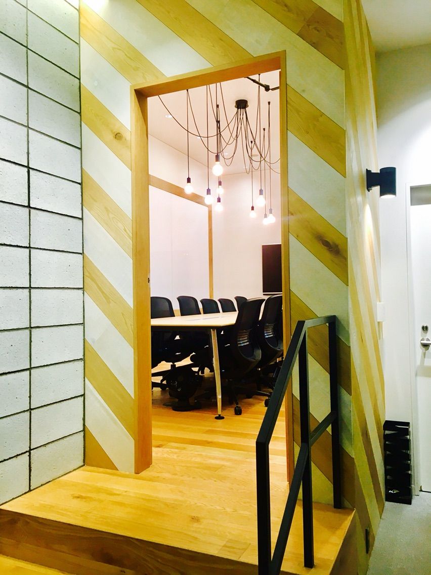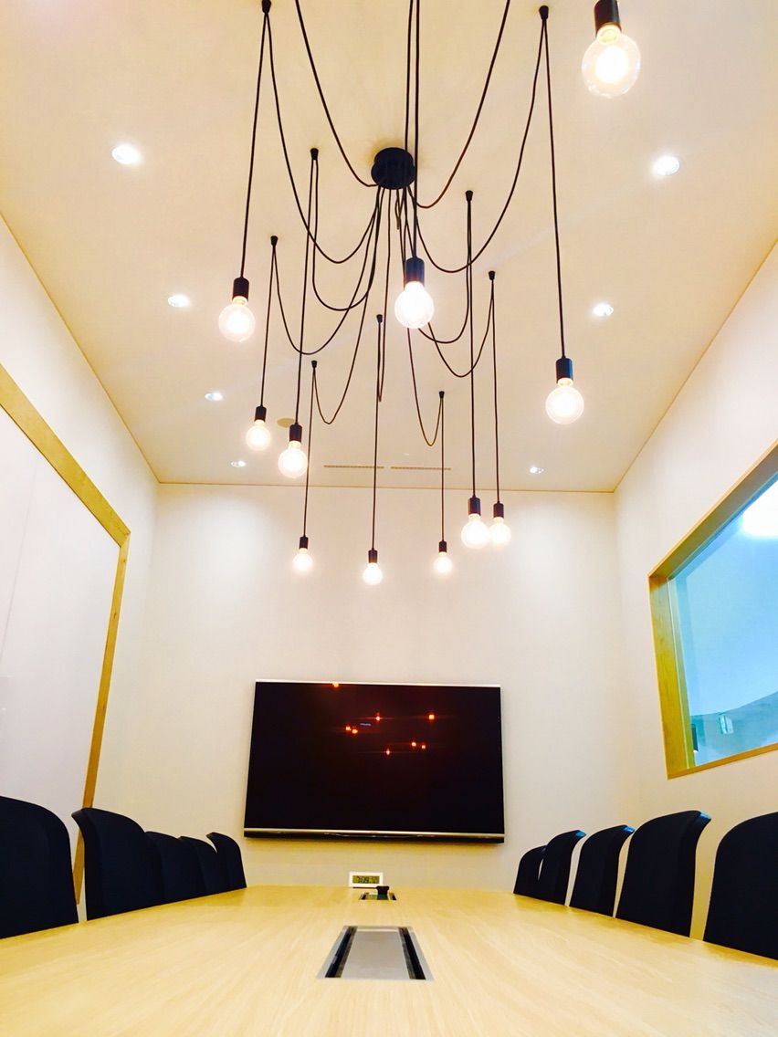 何が良いって、照明。こんな照明の会議室ありますでしょうか?なかなか無いと思います。そして、明るい。表情も自然と明るくなりますこの部屋。