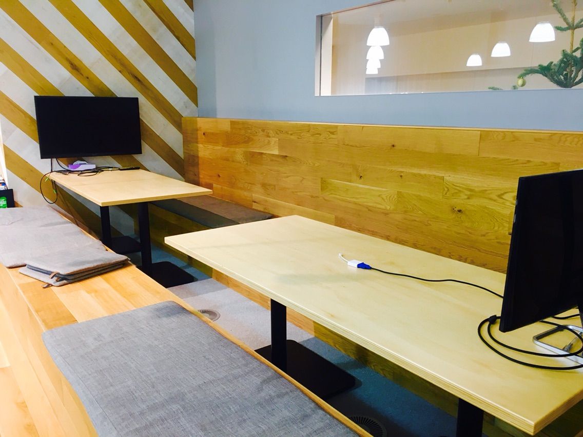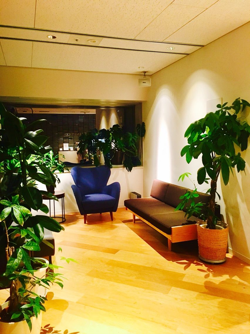 はい、きました。オシャレ。こういった空間を設ける企業も多くなってきてますが、本当に各社素敵だなと思います。もちろん、ユナイテッドもすごい素敵。
