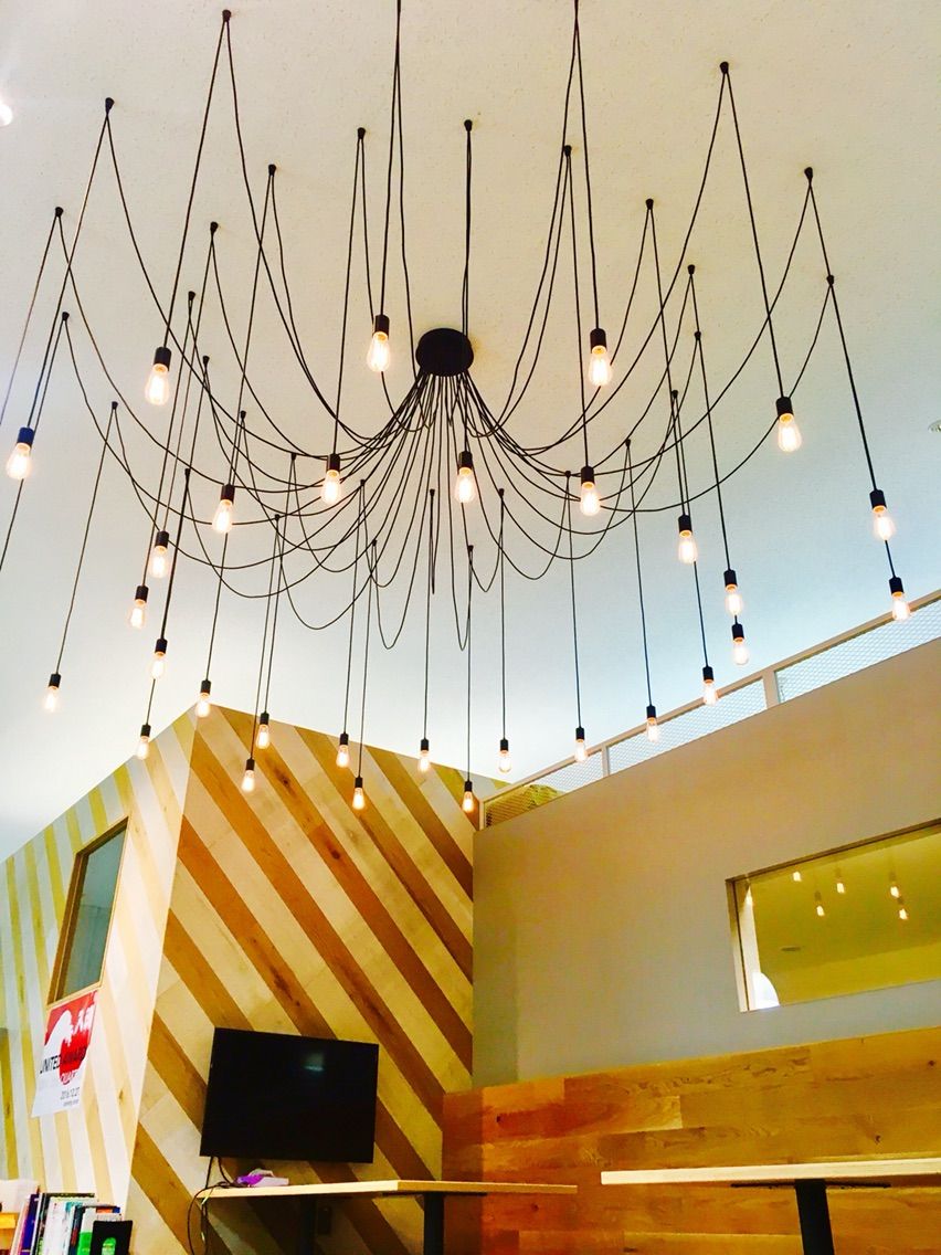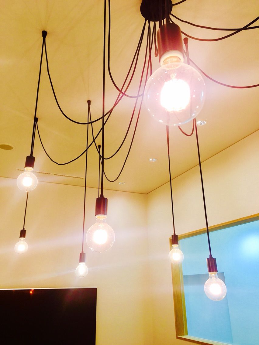 そして、ここでもまた照明がユニーク。大量にぶら下がってます。このタイプの照明珍しいですね。