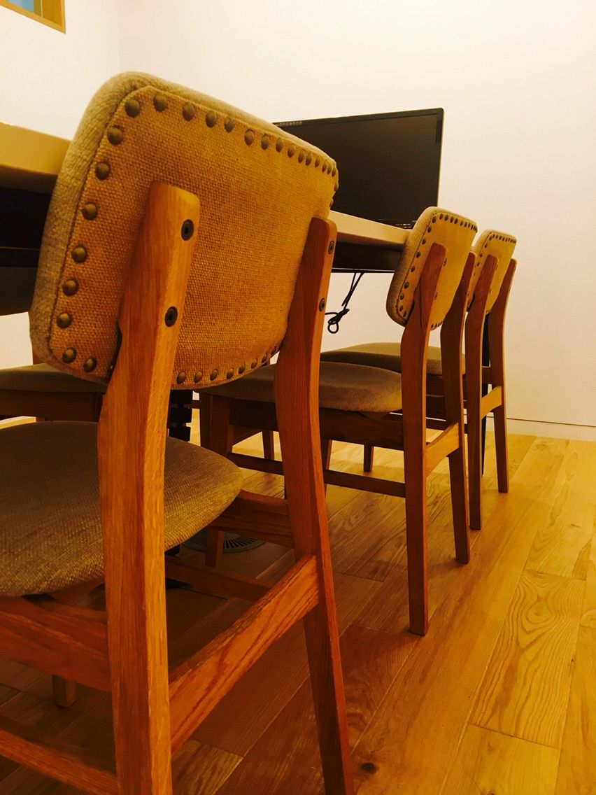 こちらはもう一つの会議室。先程の会議室とは変わってこじんまりとした部屋。ここはまた椅子がオシャレ。色や形などの細かいポイントが雰囲気と合ってるんです。