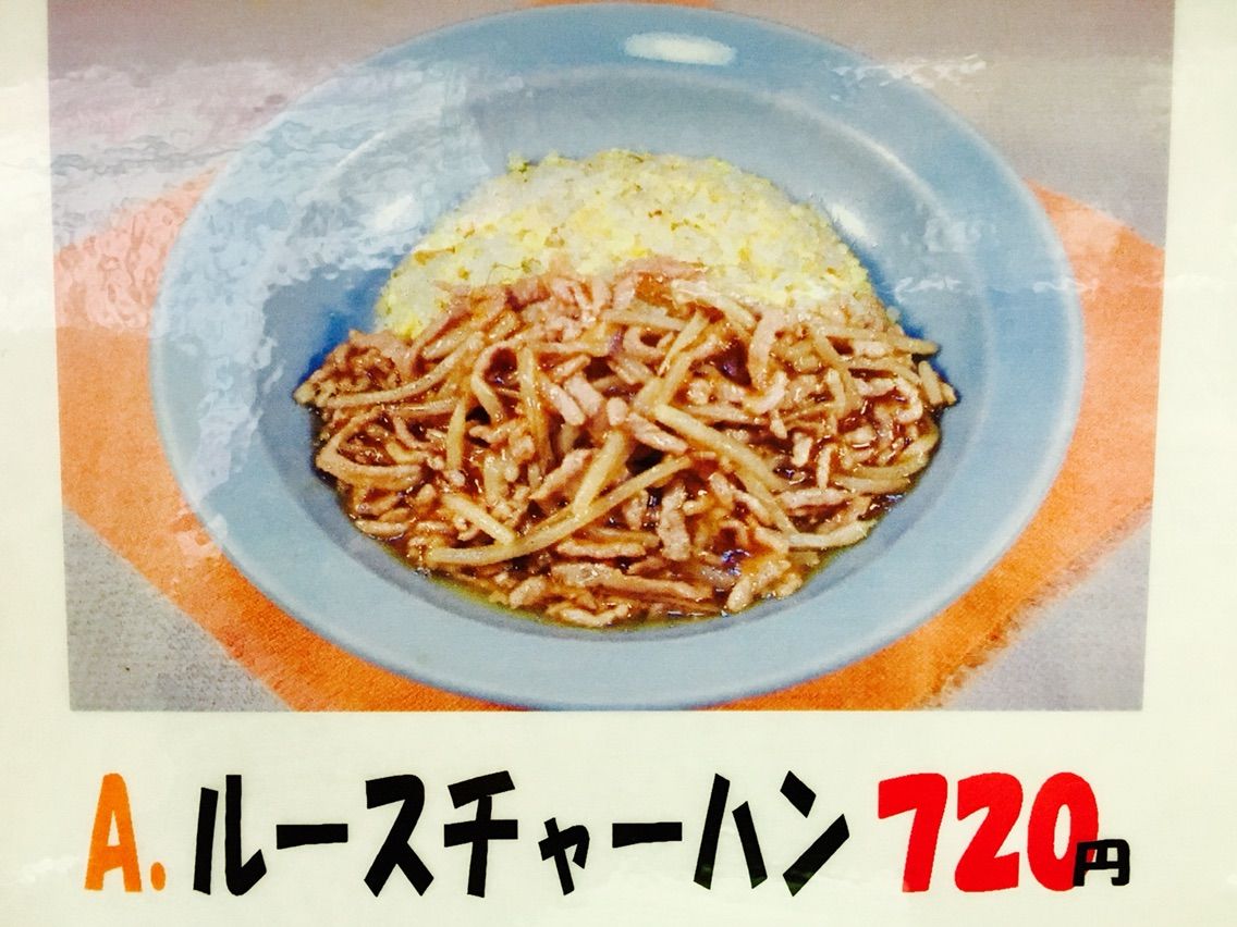 メニュー。沢山ありますねー。でも説明しません。ルースー一択です。入店して「ルースーで」をコールするだけ。ちなみに、個人的感覚でいきますと、お客さんの92%がルースーチャーハン頼んでます。