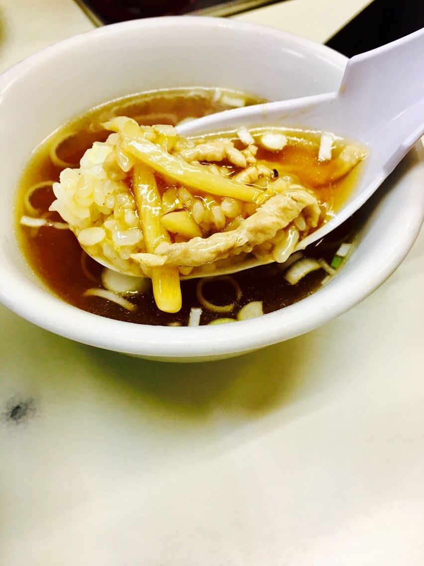 そんなこんなしてると、スープがきます。スープの置き方が雑で、スープこぼれる確率75%。でも、それでいいんです兆楽は。ちなみに、兆楽は2店舗ありまして、本店は渋谷駅近くにありますが、本店は玉子スープです。ここ宇田川町交番裏は醤油ベースのスープ。