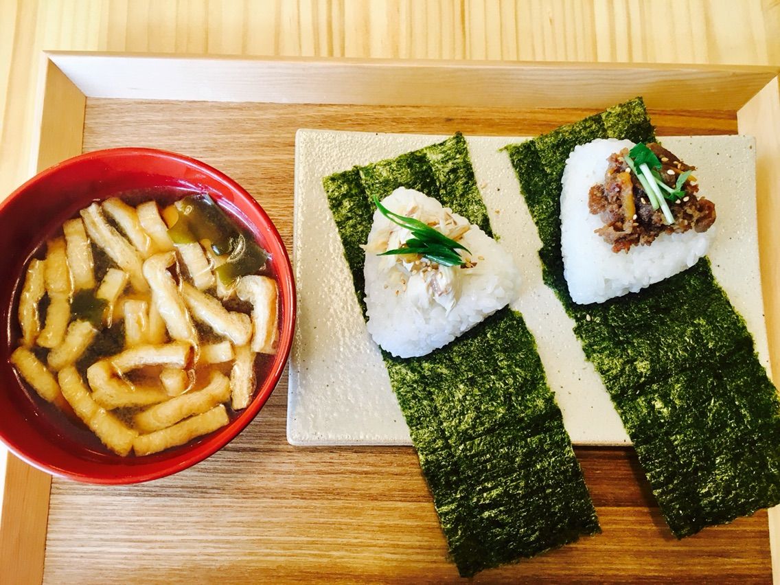 さて、きました!おむすび!!味噌汁!オシャレですね。