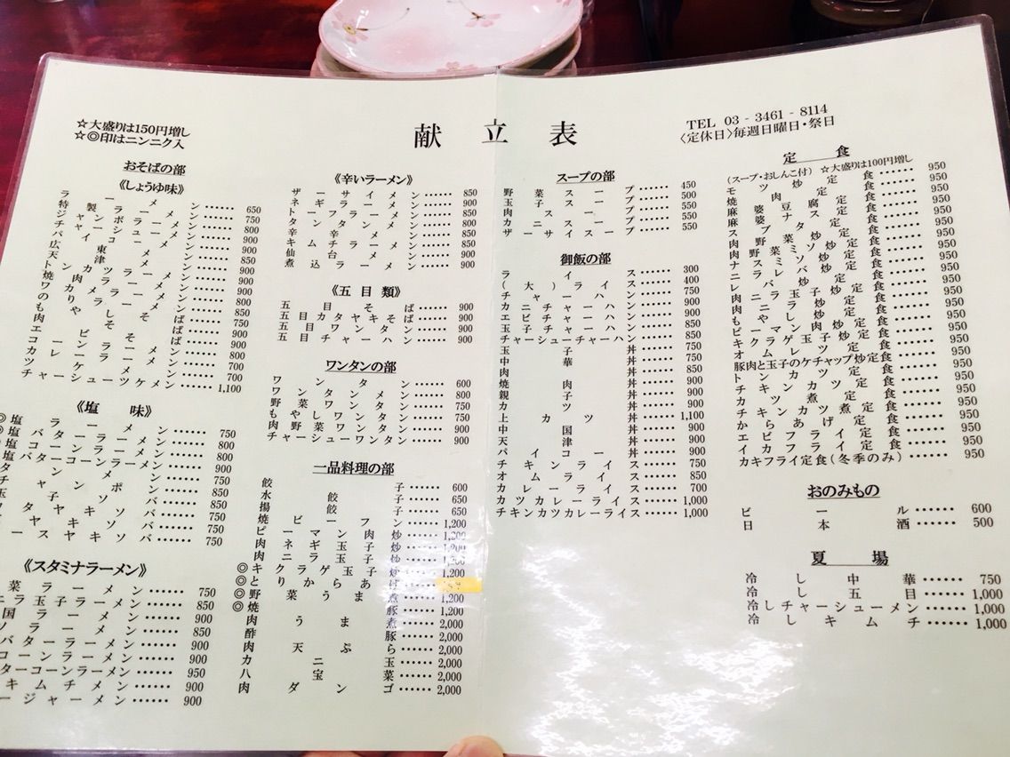 メニューです。明朝体が いかにもな中華料理店ぶりを漂わせております。結論、メニュー多いです。本気で迷います。今回は名物メニューの一つ カツカレー いきます。