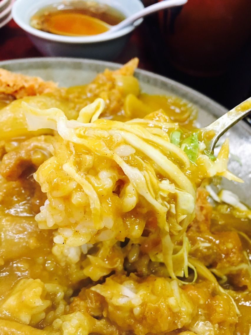 カツも分厚いですし、カレーにバッチリ合います。下には軽くキャベツが敷いてあり、シャキシャキ感も楽しめます。