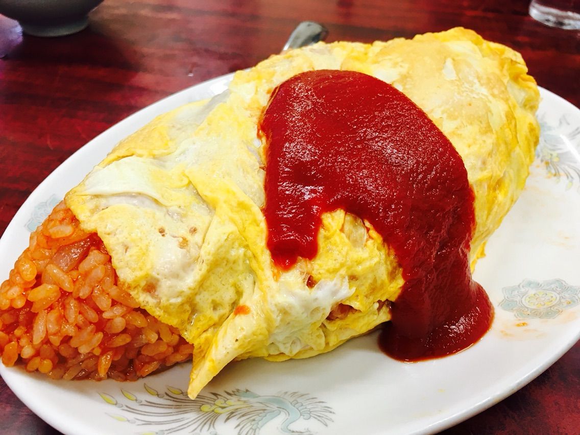 ちなみに、オムライスはこちら。これも非常にデカイ。お茶碗3杯分くらいはあったと思います。卵が包み切れておりません。バカヤロウです。