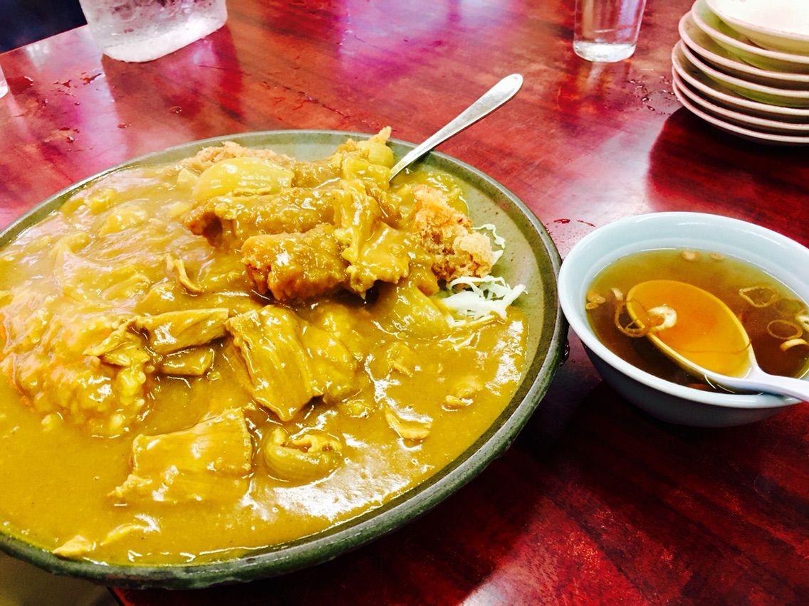 待ってる間、周辺のテーブルに料理が運ばれていくわけですが、全部デカイんです。戸惑います。でも、誰も大盛りを頼んでないんです。不思議です。さて、カツカレーきます。