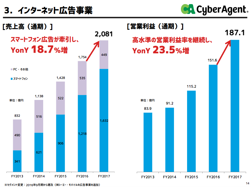 17年9月期:2,081億円(スマホ:1632億/PC:449億)