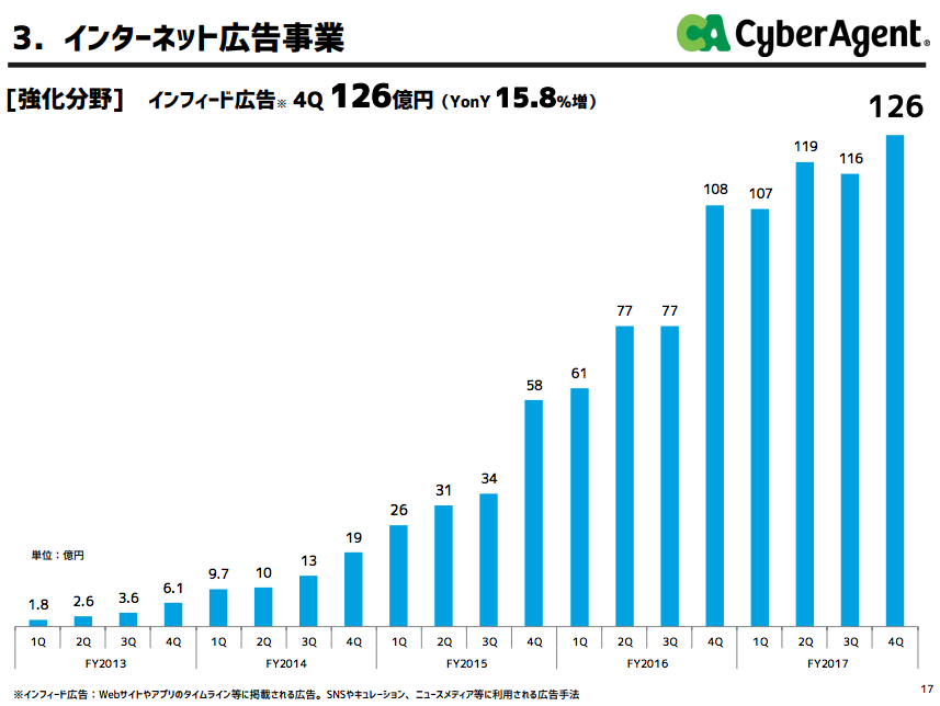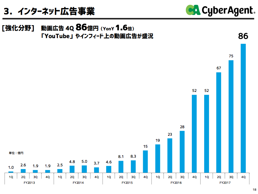 以上になります。対外的にはAbemaTV等が注目を浴びますが、広告事業すごく伸びております。通期売上2,000億円を突破した広告事業、今期どこまで積んでくるか動向追いかけていきたいと思います。