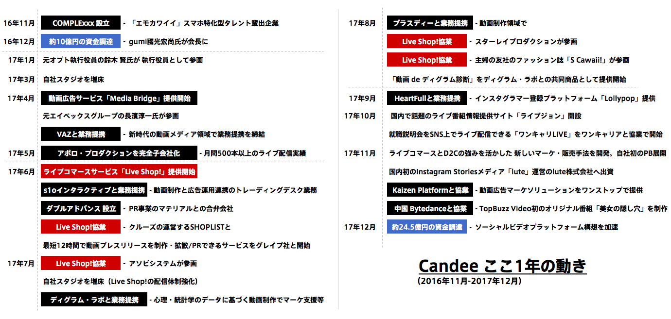当ブログでも度々取り上げておりますライブコマース領域における活発な動きも目立ちますが、この1年を通して非常に動きの多かったように感じます。今回はそんなCandeeのこの1年間の主なTOPIXを振り返ります。