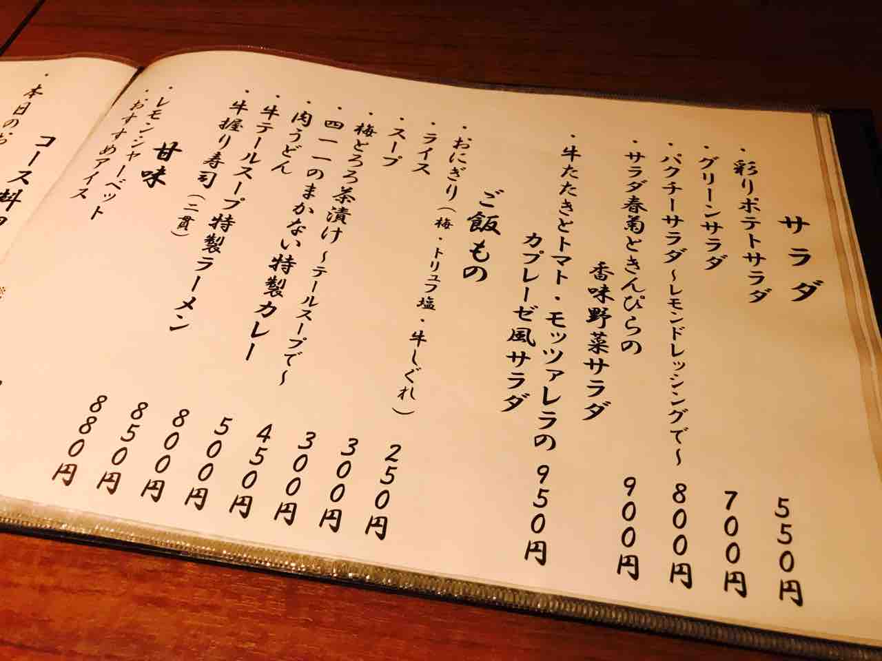 メニューはたくさんあるので一部だけ。