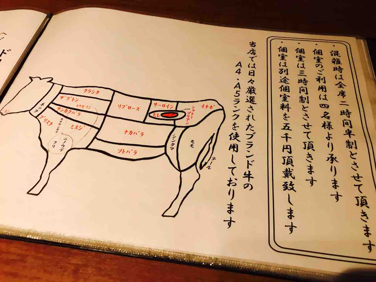 肉に関してはブランド牛のA4・A5ランクを使用しているとのこと。提供部位も説明してくれます。