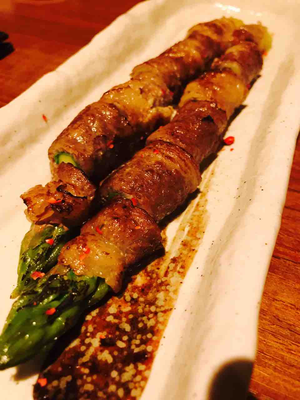 アスパラの肉巻き。にんにくバターが最高に効いてます。