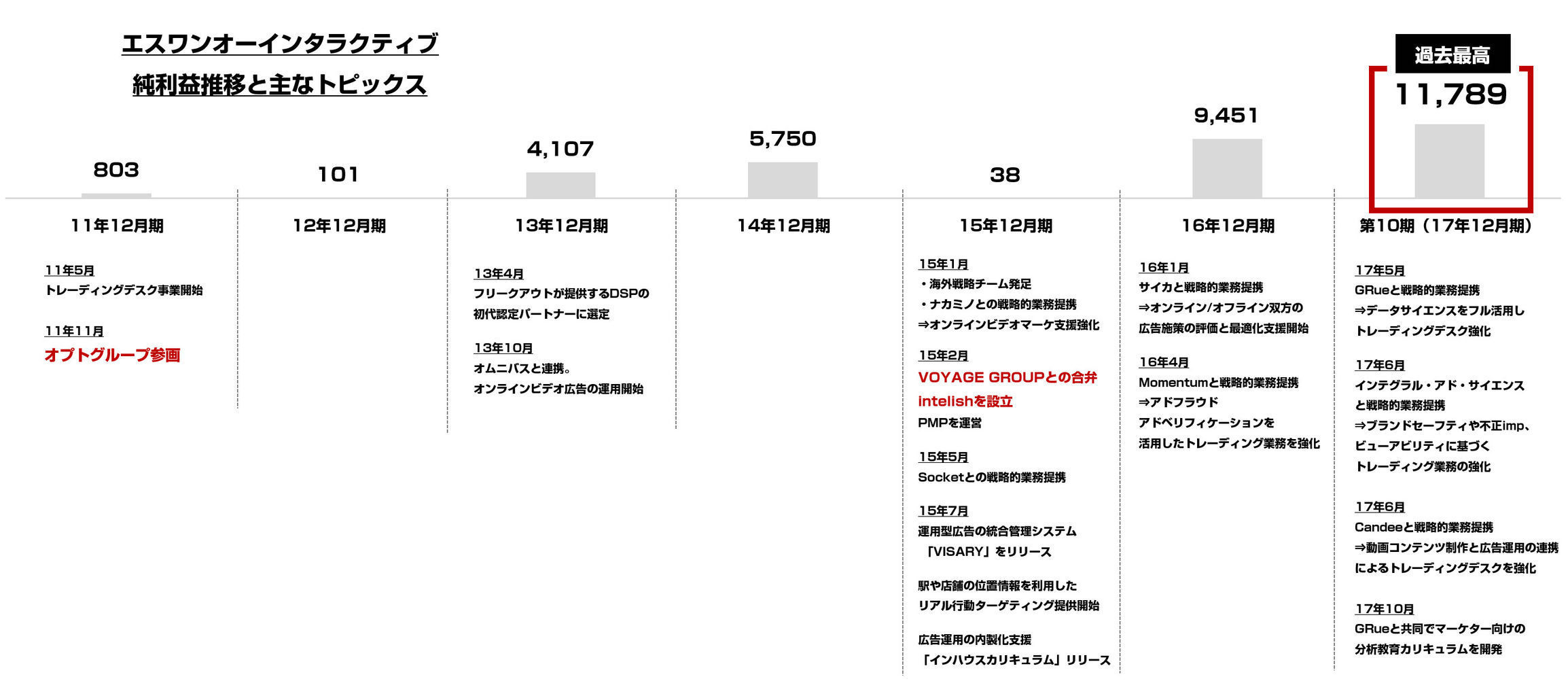 ここ数年は各企業との戦略的提携が目立っておりまして、前期も3社と提携、トレーディングデスク業務の強化を行っております。前期で見ると、ブランドセーフティやアドフラウド、データサイエンス、動画などを強化しております。今期も提携の動きが出てきそうで、引き続き動向を追いかけていきたいと思います。