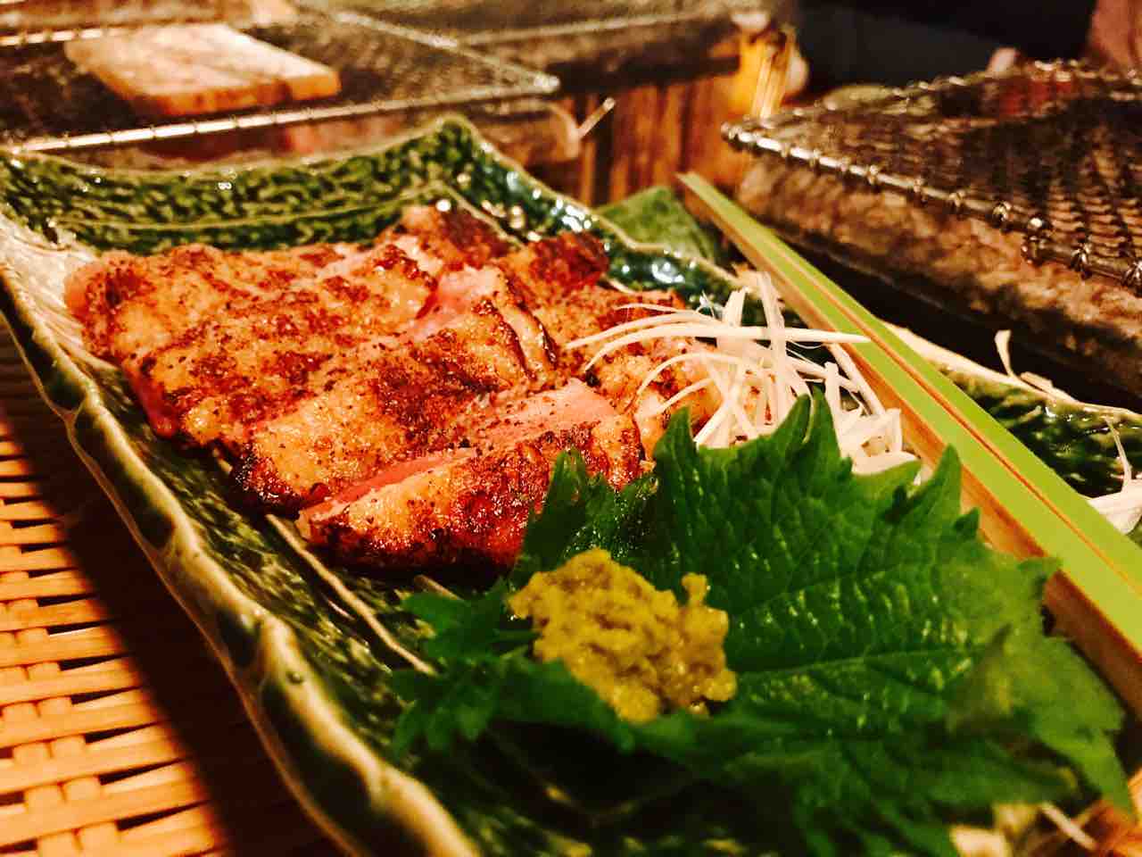肉は地鶏焼きを。肉は自分で焼くのですが、網の上に一枚の板が運ばれてきます。それが岩塩になってまして、その上で肉を焼くスタイルとなっております。焼けたら、柚子胡椒を添えて食べるのがオススメ。