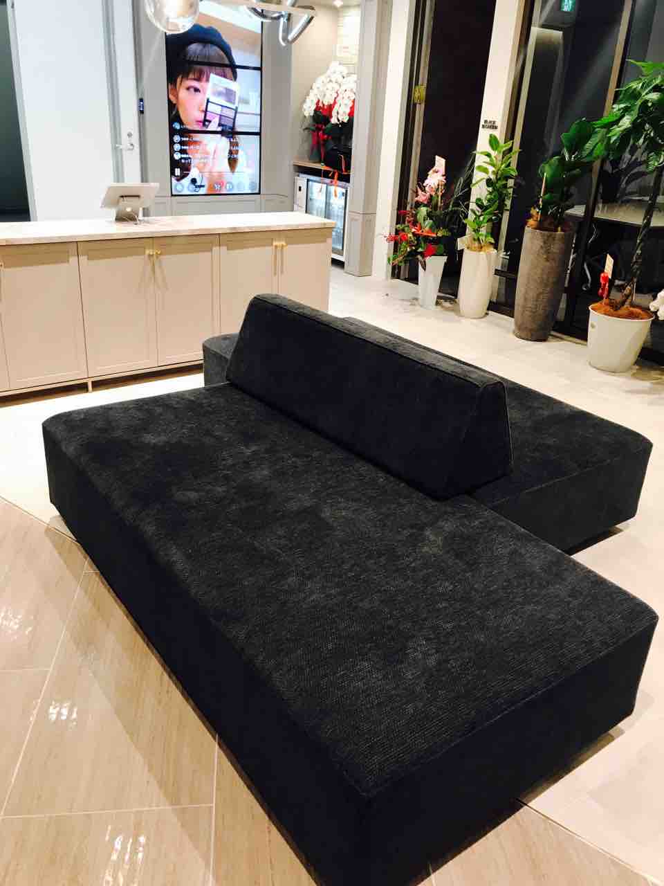 受付の後ろには大きめのソファーがありまして、こちらで「Live Shop!」の動画を見てお待ちください。