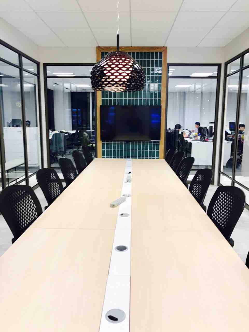 その横には、少々大きめの会議室。全面透明ガラスなので、開放的。