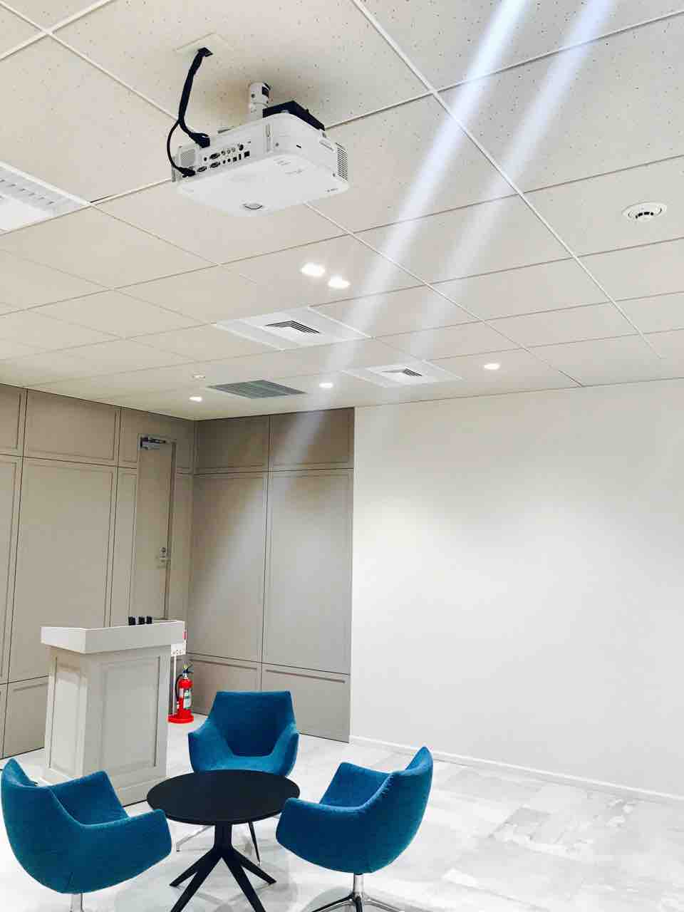 司会台もプロジェクターも完備です。