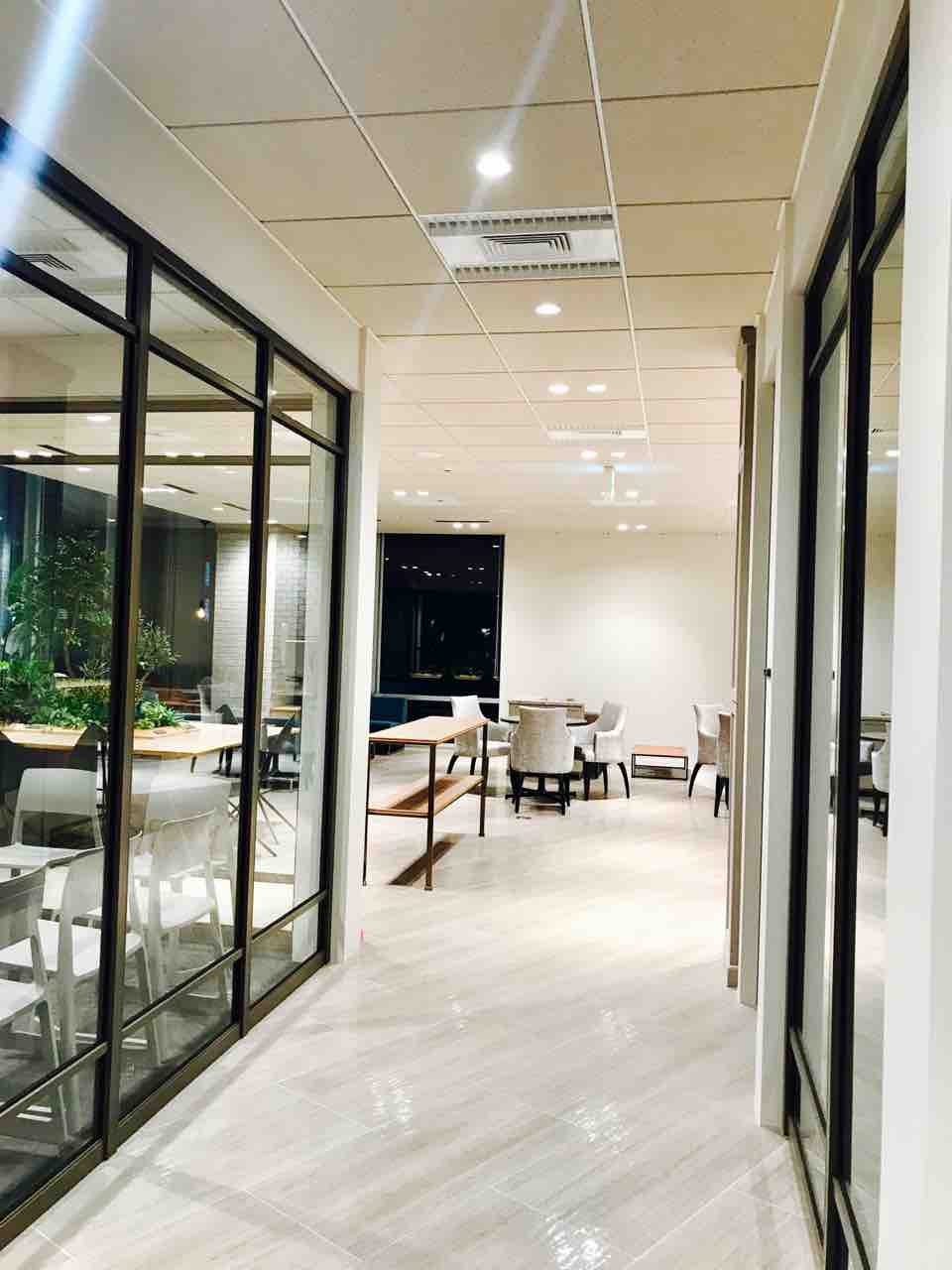 さて、奥に進みます。次に紹介するのがフリースペースです。全体的に照明が明るいですね、通路もすごく明るいです。