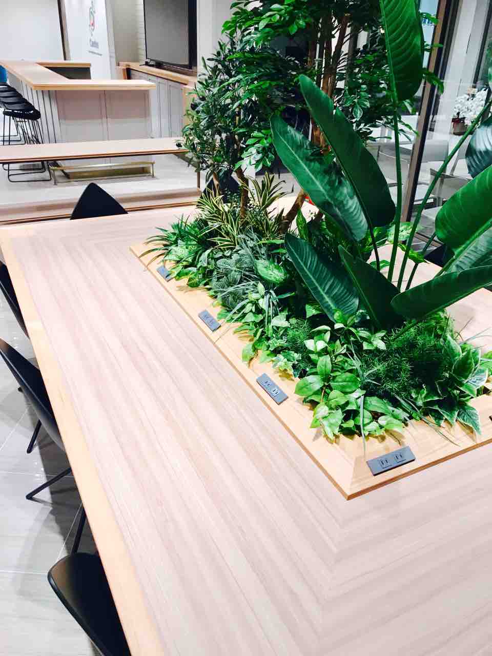 緑を囲むテーブル。たまにカフェとかで見かけるやつですね。最高です。