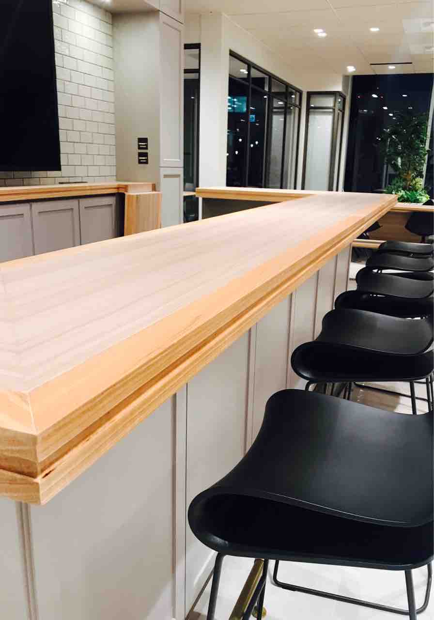 木のカウンターに少し高めの椅子が最高。