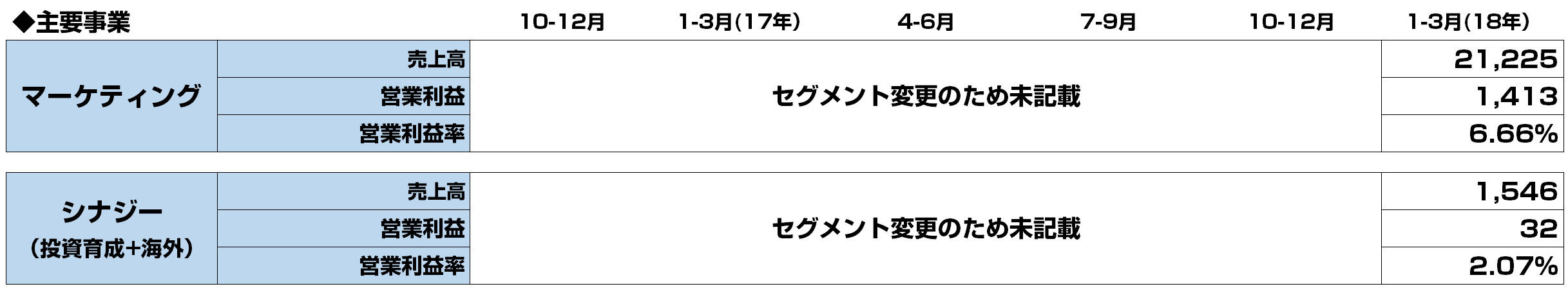 以下の通り、今回からセグメント変更となっております。
