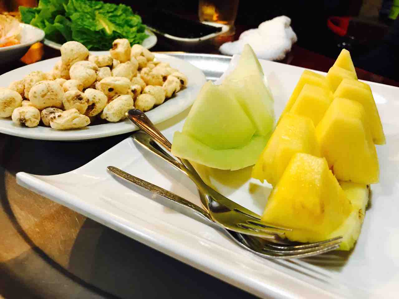 最後はデザート出てきます。フルーツとポリコーン。ポリコーンは食べ放題。勝手に追加されていきます。要求しなくても追加されます。自動です。