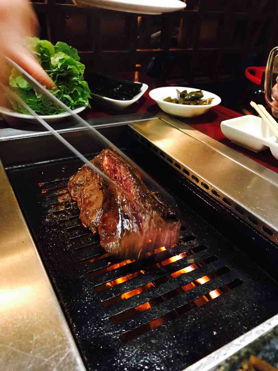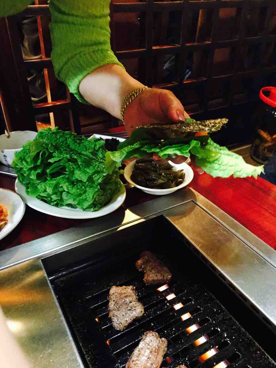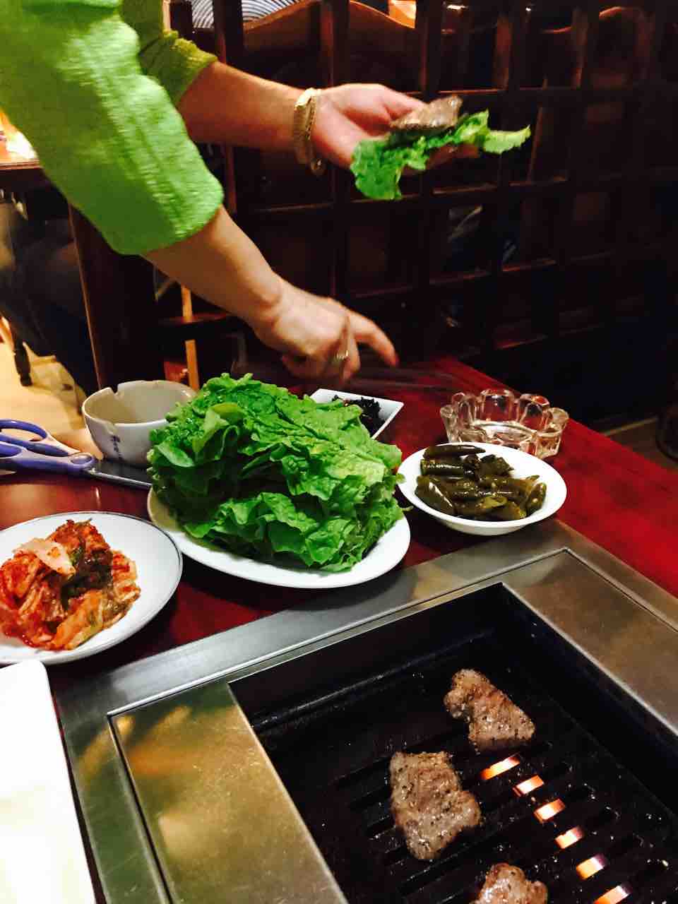 ちなみに、たまに店員のおばちゃんがサンチュに包んで口に運んでくれます。要求しなくてもきます。自動です。