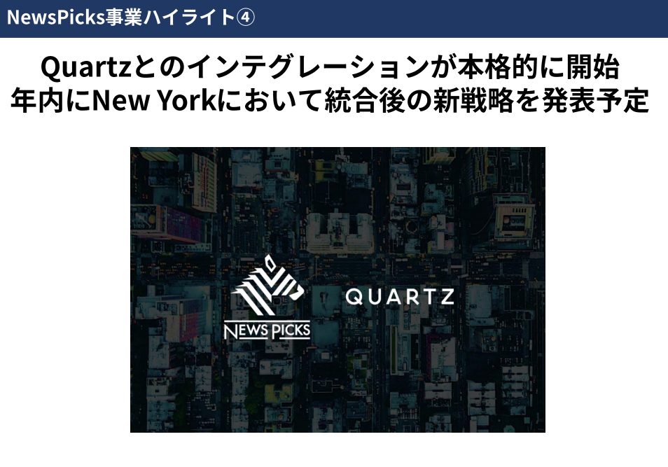 そして、なんといっても今後の材料として注目なのが、買収したQuartzとの展開。年内にニューヨークにて統合後の新戦略を発表予定ということで、期待が膨らみます。