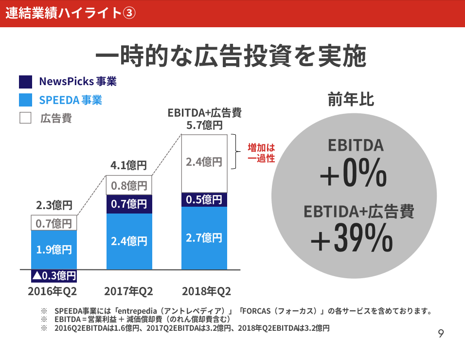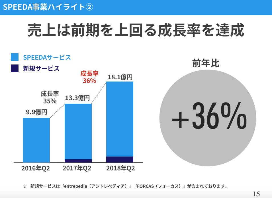 SPEEDA事業は売上・利益は大きく増加。その利益を原資に新規サービスへの投資が出てきております。